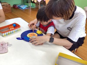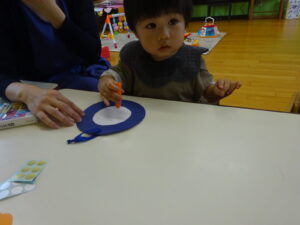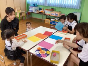 こじかルームのお友だちはお花紙を使って、のり付けに挑戦しました!!