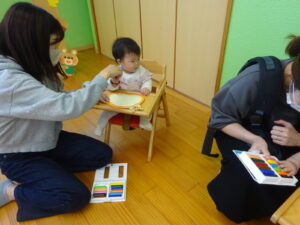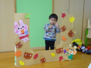 お部屋遊びでは緊張した様子でしたが、ニコニコな表情も見せてくれました😊