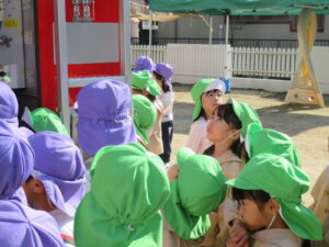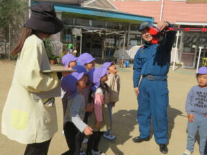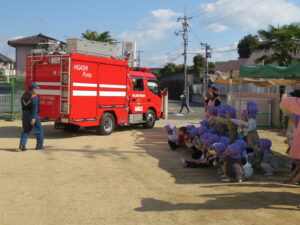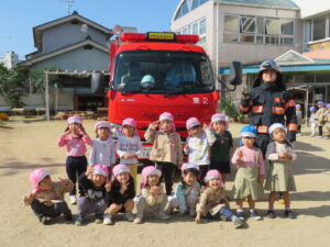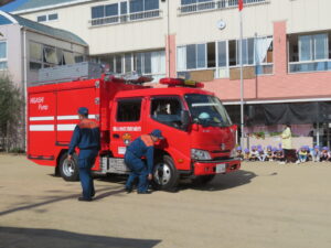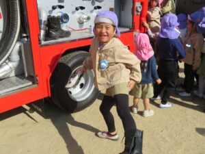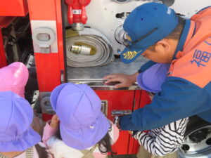 と消防士さんに聞きに行き、消防車の中を見せてもらいました♬