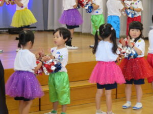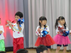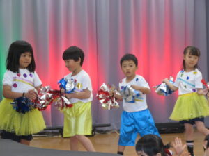 自分たちで飾りつけした可愛い衣装とポンポンを持って元気いっぱい踊ります♬