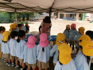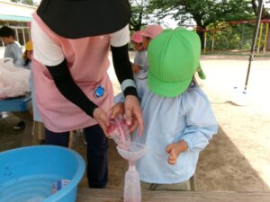 最後はみんなが作った色水を1つの容器にまとめました🌼さて、何色になるでしょうか??