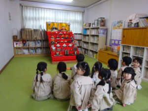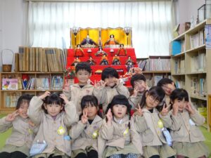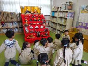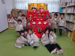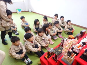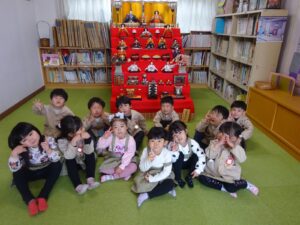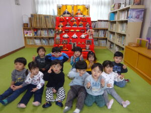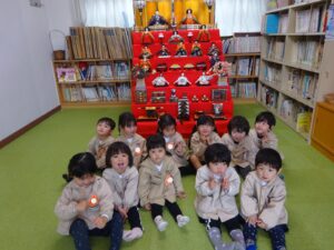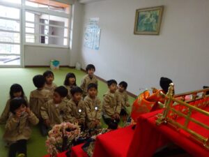 今日は、おひな祭り🌷2~5歳児クラスのお友だちは、ひな人形を見に行きました✨