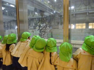 見学したばかりのクレーンが壁に!みんなでお写真を撮りました📸