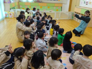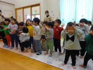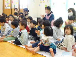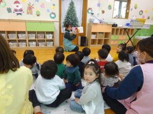 まずは、みんなでサンタさんの手遊びをしたり、絵本を見ました🎅