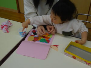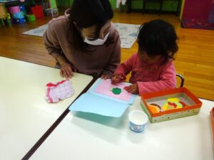 赤ちゃんルームでは春の製作遊びを行いました🌼