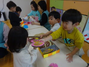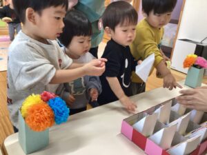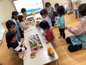 0,1歳児クラスでお店屋さんごっこを行いました🍒