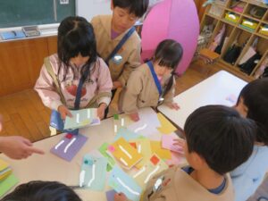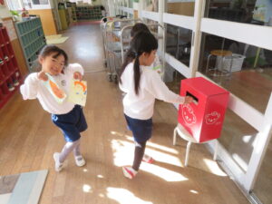 年長さんはポストの手紙を回収、クラスごとに仕分けて…