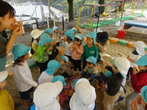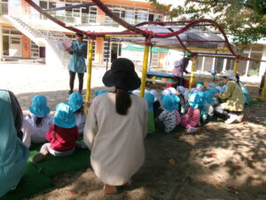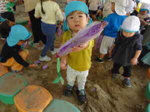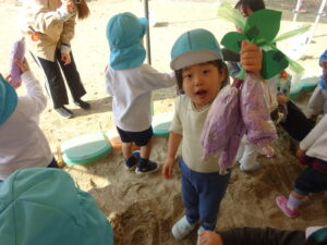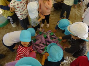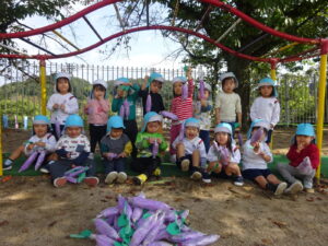 お芋ほりの最後はみんなで「やきいもグーチーパー」の歌を歌って楽しみました♬