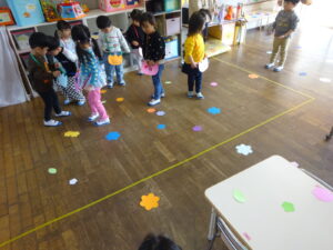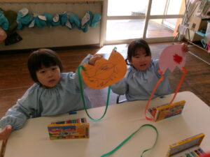 今日はめろん組、みかん組さんが遠足ごっこを行いました🚌