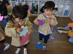 お次はお外へ木の実や葉っぱ、木の枝など自然物を探しに行きました🌳