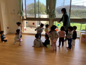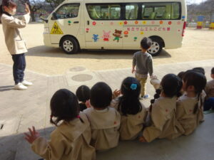 バスに乗ってみんなで「バスにのって」のお歌を歌いました♪