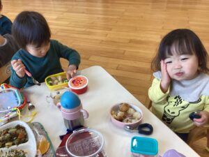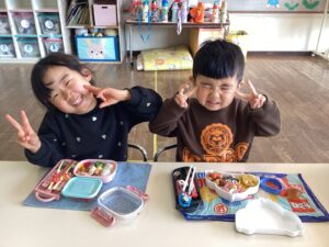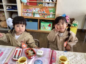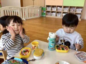 遠足ごっこの最後には楽しみにしていたお弁当の時間🍱✨