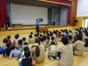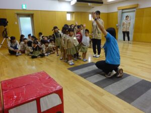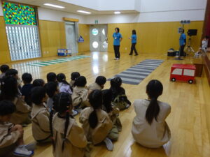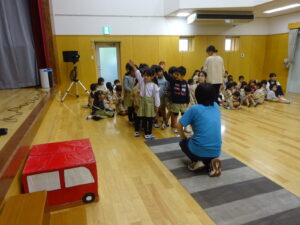 まずは、ペープサートを使って交通ルールのお約束を確認🚗