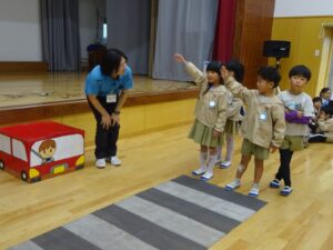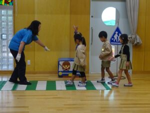 年中さんと年長さんは横断歩道を渡る練習もしましたよ!